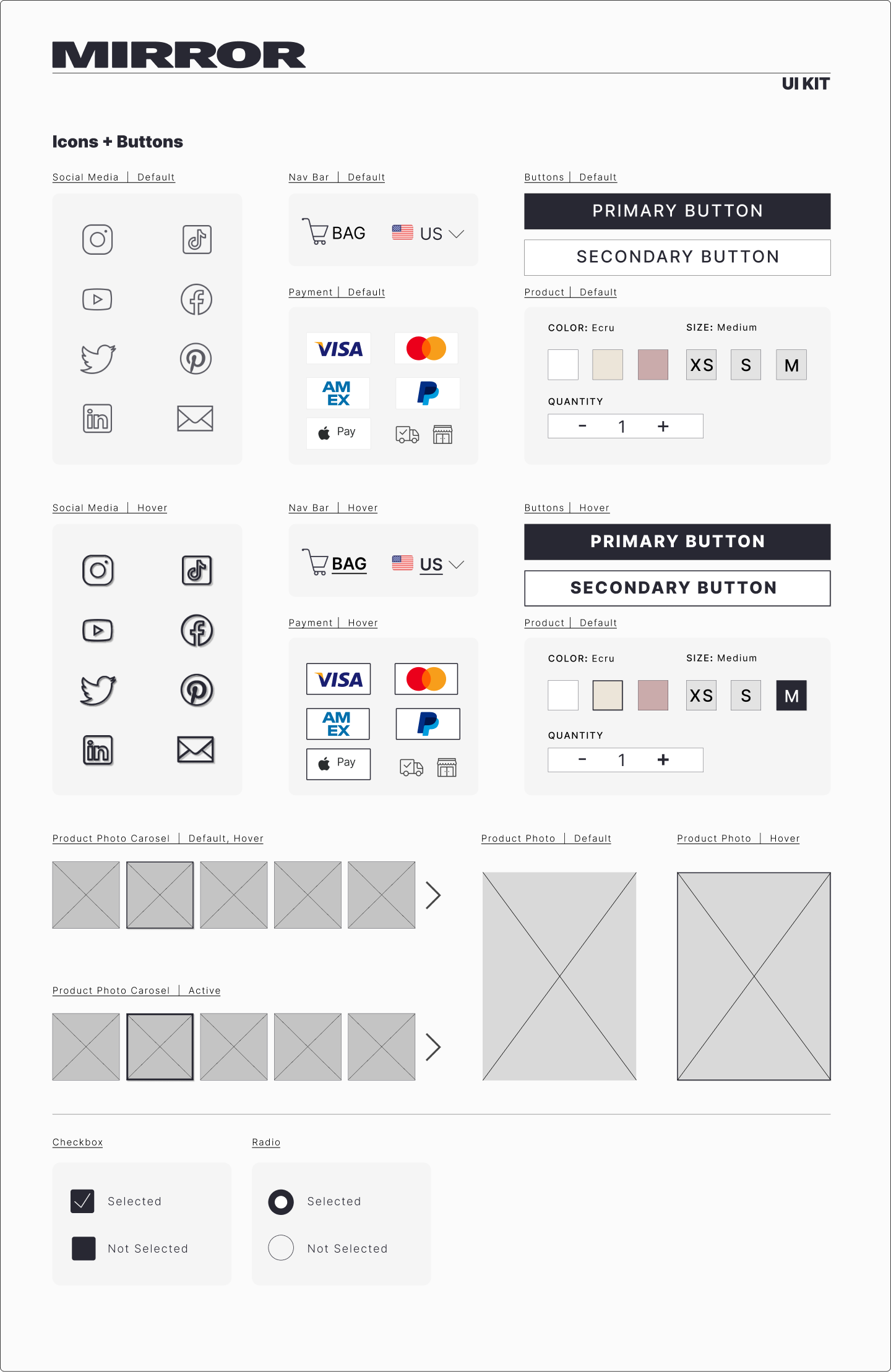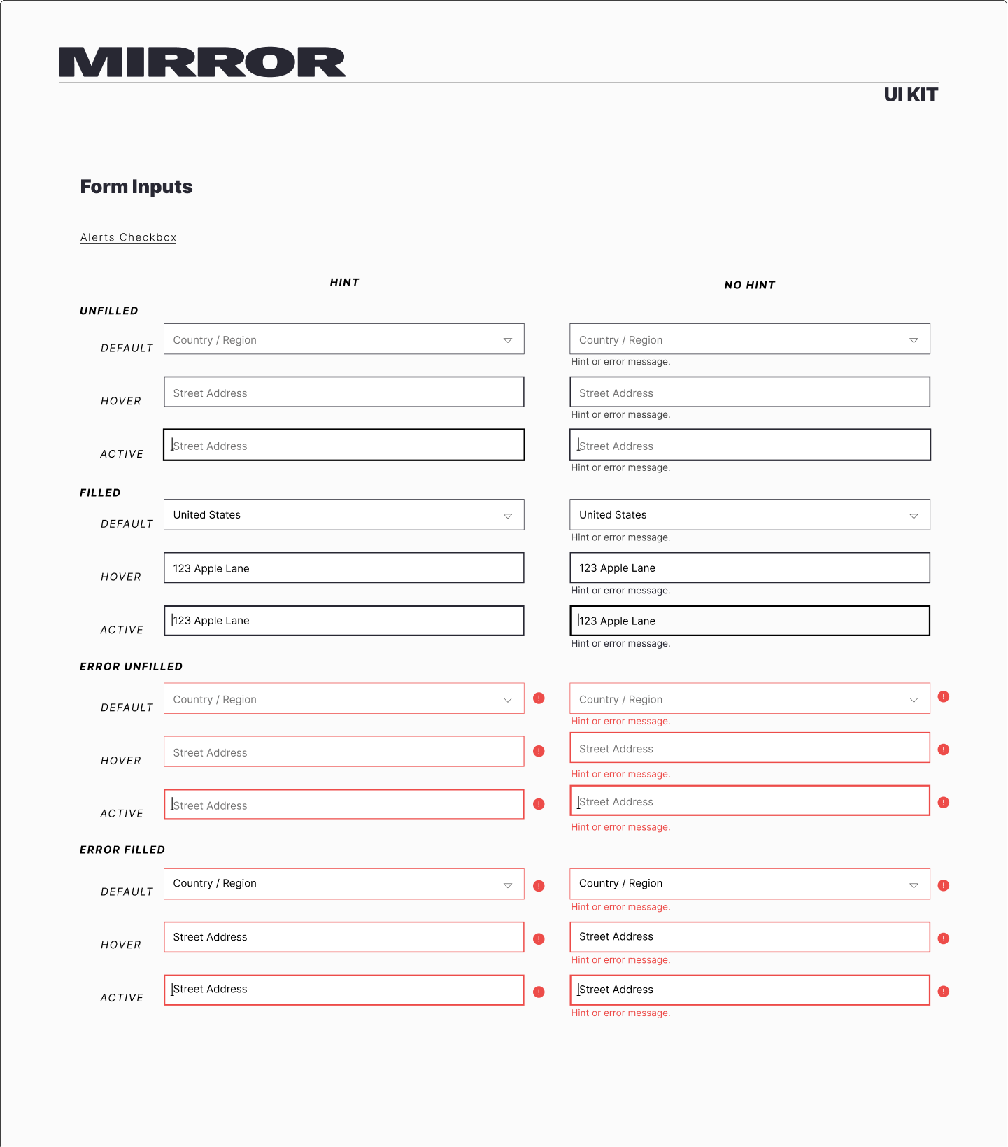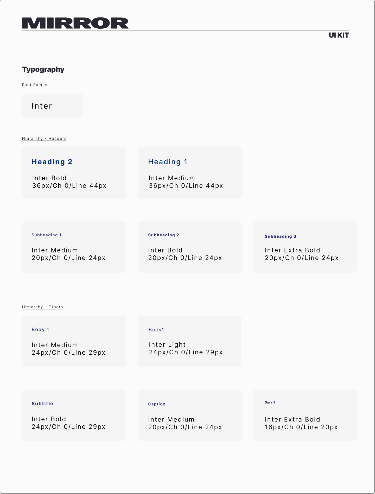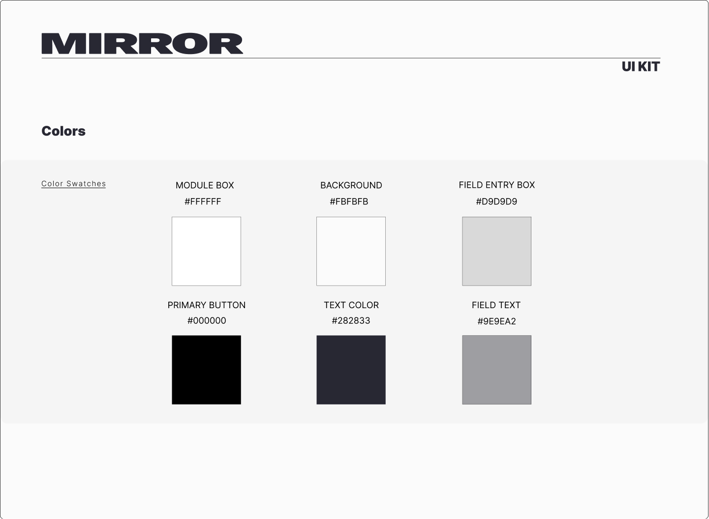 This UI Kit was created to ensure that all elements were consistent throughout Mirror’s web pages.
