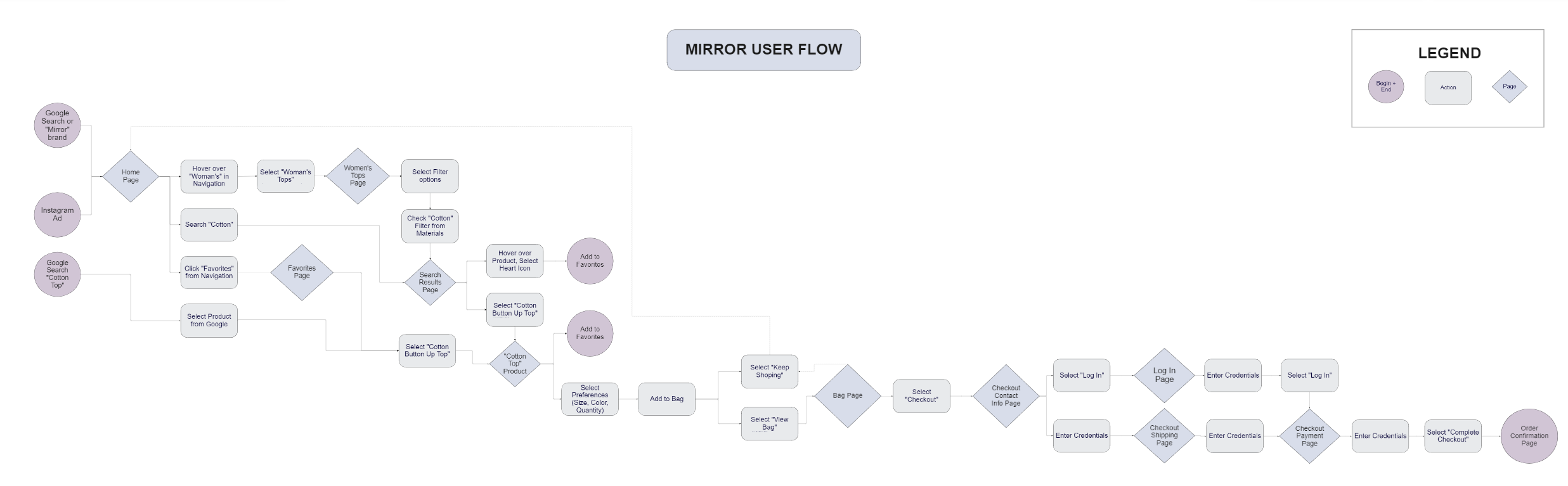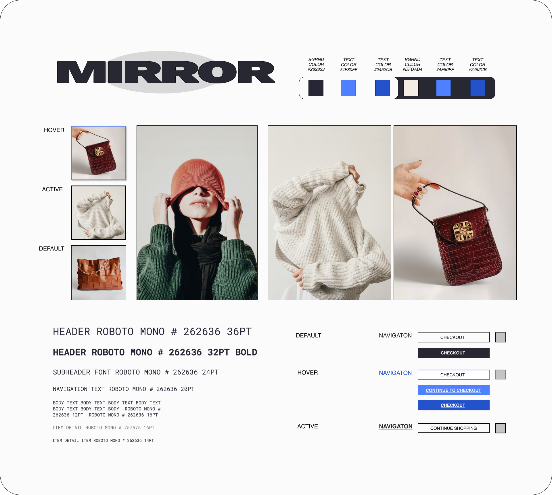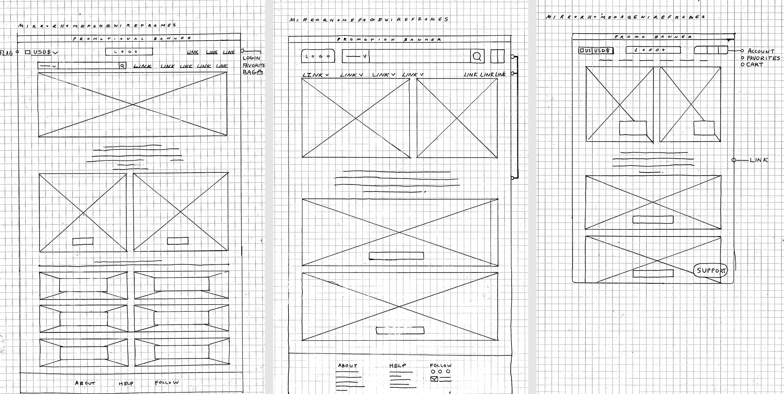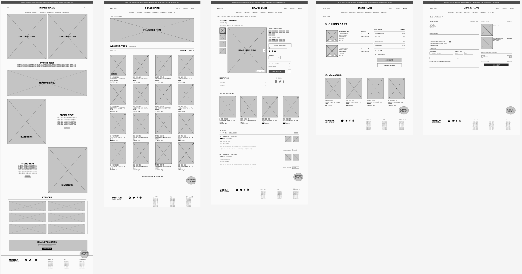 Mirror will be updating and expanding its online presence through a newly rebranded website. By organizing the checkout process, transactions will be more efficient than ever. By implementing robust search tools, customers will be able to locate each product they need. By adding the option to favorite an item, customers will be able to decide on items before purchase. Mirror will also clean up its current website with a modern and neutral aesthetic, hoping to broaden its customer base and attract a wider net of clients.