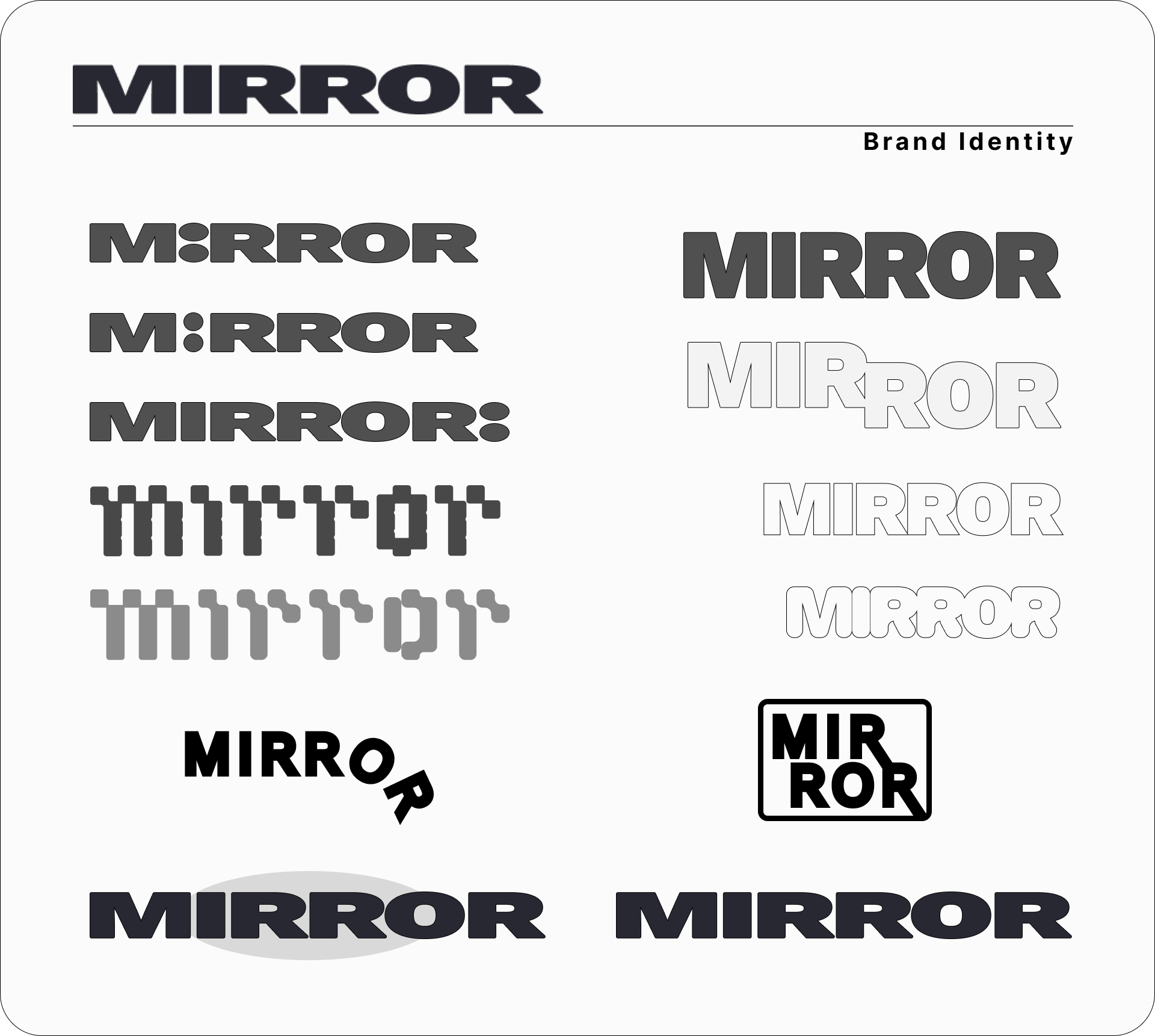 In an era where trends are short-lived, it is important to make a lasting impression with a brand’s visual identity. Due to the broad range of users I studied during my research, I decided to keep the design open-ended and neutral. To contrast this, I designed a bold logo to create a memorable association with the word Mirror.